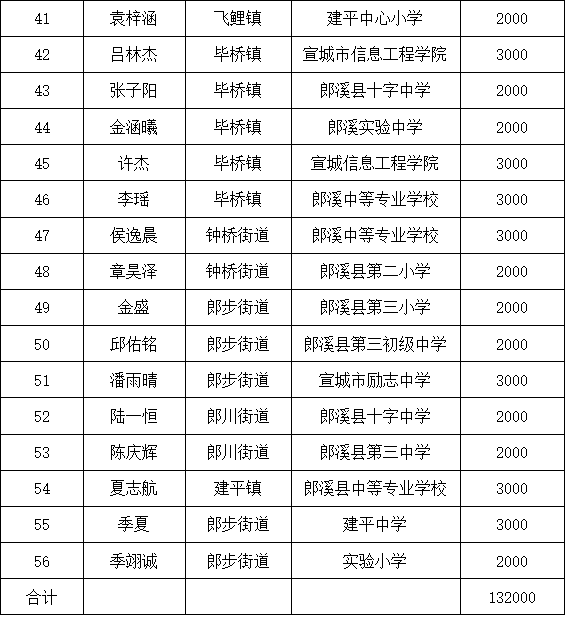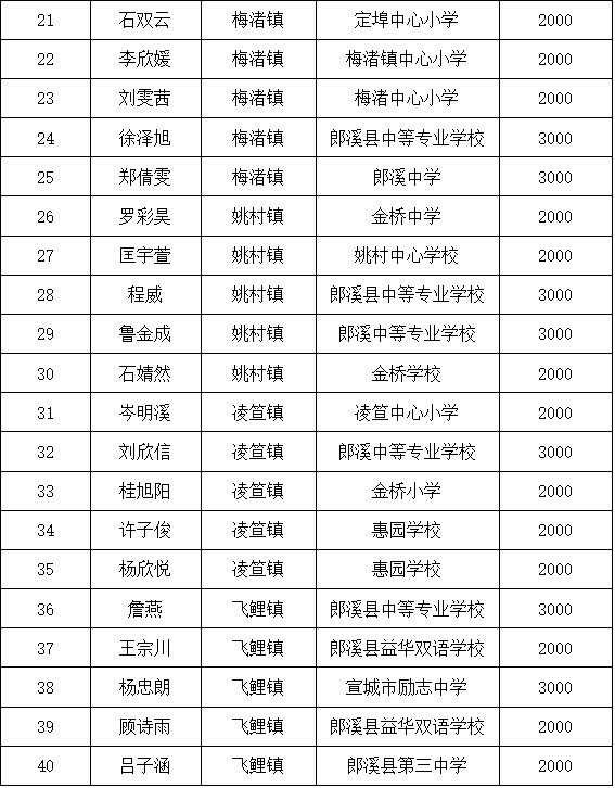 郎溪县红十字会2025年度“博爱仁信·助梦成长”助学金拟资助名单
